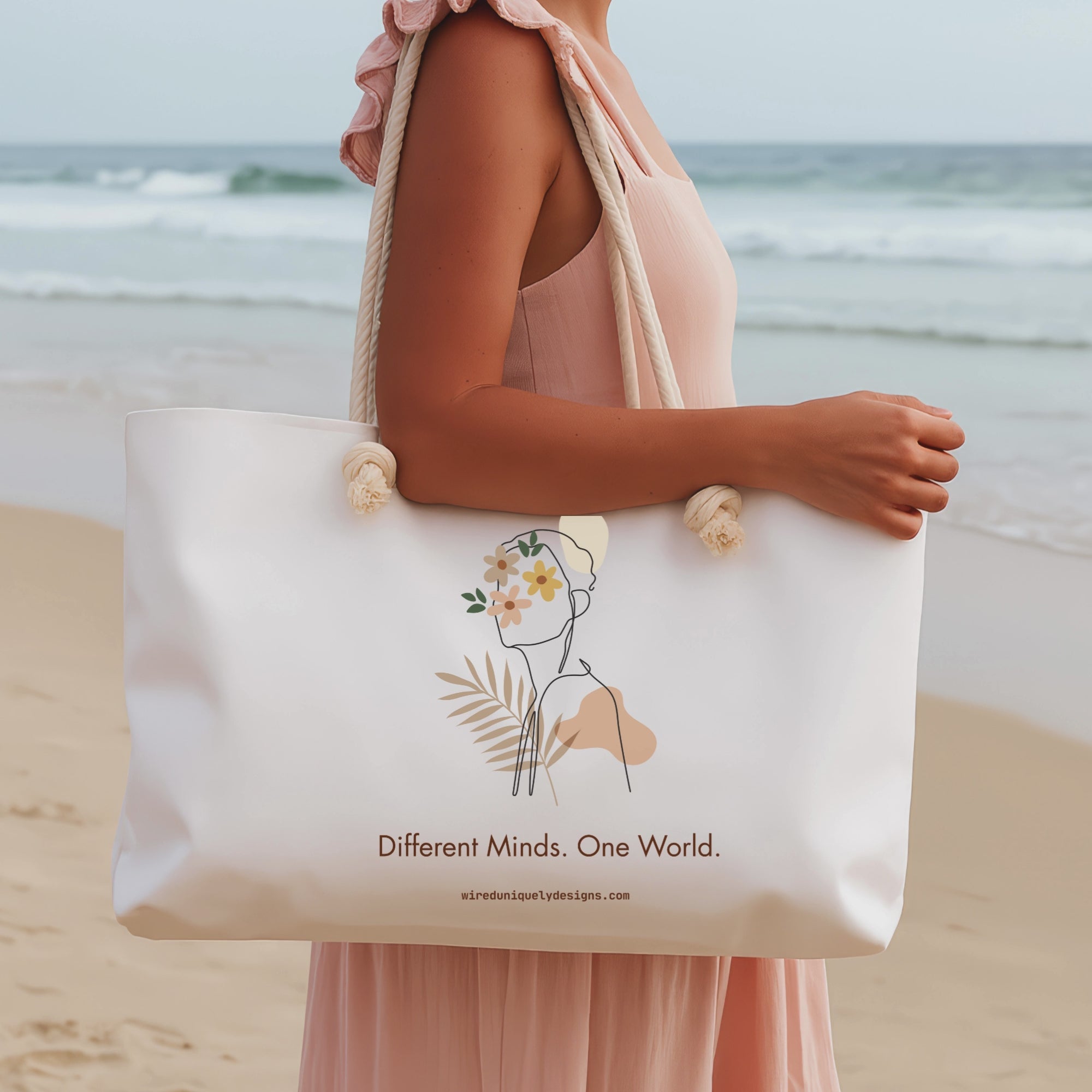 Our oversized Different Minds Tote combines modern line-art design with everyday functionality. Whether you’re headed to the beach, the market, pilates, or your next coffee shop session, this bag is durable, stylish, and made to spark conversation.